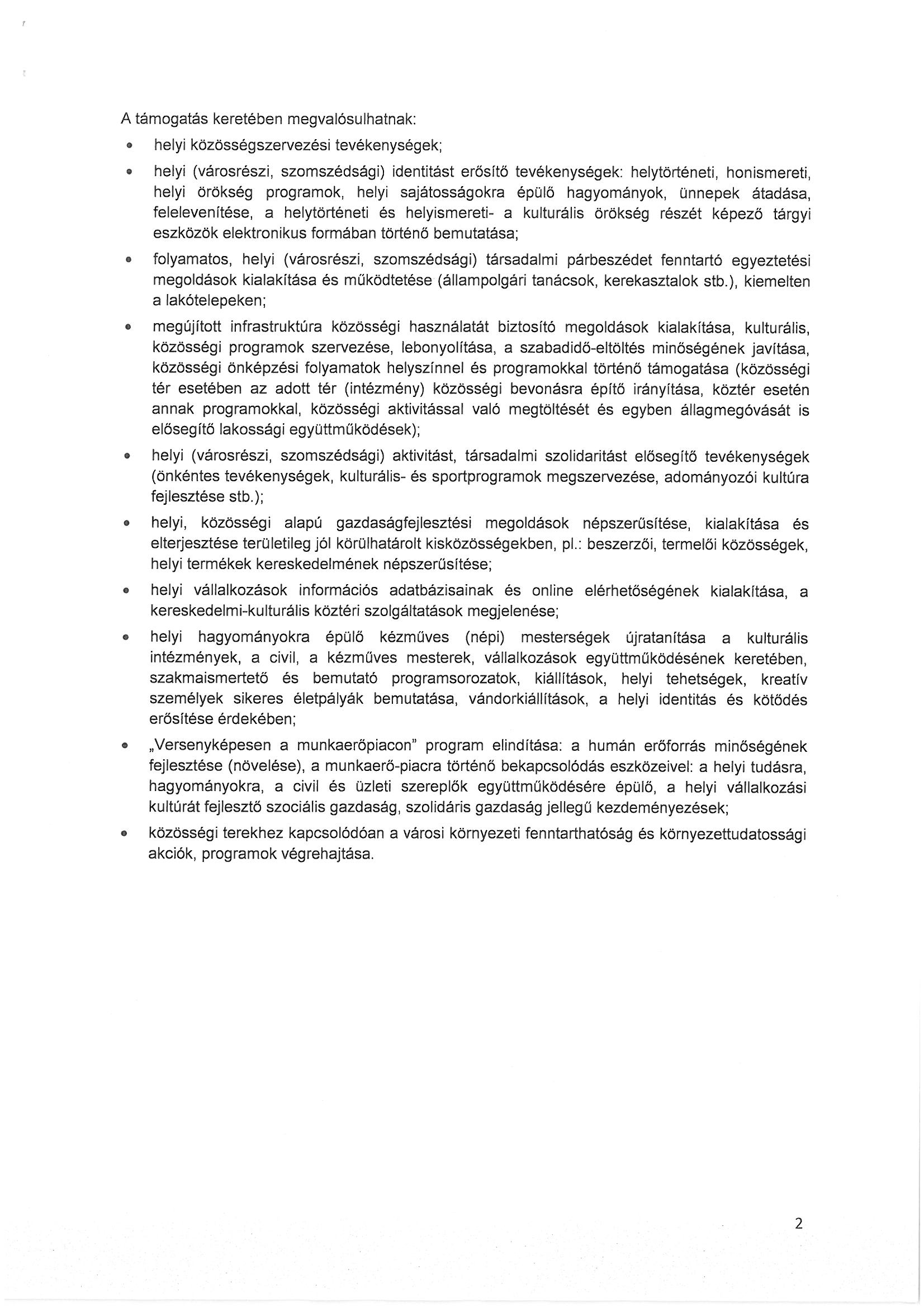 A pályázati felhívás alapján a Szentesi Helyi Közösség helyi fejlesztési stratégiáját 2016. június 30-ig kell elkészítenie és benyújtania, mellyel 800 millió forint támogatást igényelhet a város. A támogatást a stratégiában meghatározott városi kulturális és közösségi terek, szolgáltatások fejlesztésére, kínálatuk bővítésére, valamint az azokat kiegészítő közösségszervezési-, és fejlesztési, identitást erősítő, az összetartozást elősegítő tevékenységek megvalósítására lehet igénybe venniük a helyi szereplőknek.