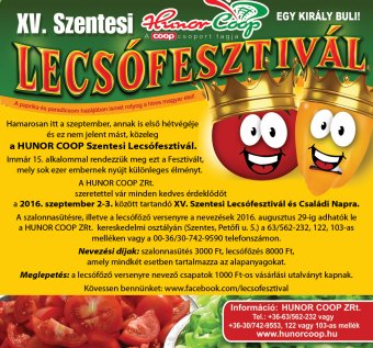 Lecsó beharangozó.Idén szeptember 2-3-án rendezi a Hunor Coop Zrt. a Lecsófesztivált. Itt olvasható a felhívás, már lehet jelentkezni mindkét napra a főzőhelyekért.