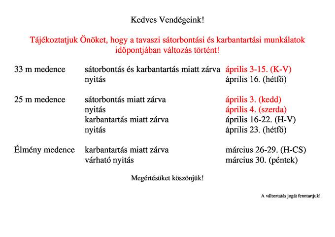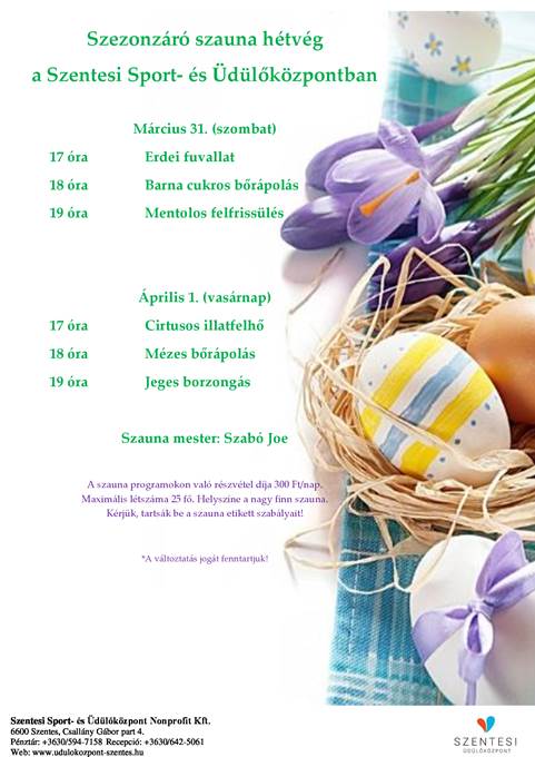 A Szentesi Sport és Üdülőközpont az ünnepek alatt is változatlan nyitva tartással várja vendégeit. Sor kerül az ünnepi szauna szeánszokra, valamint tájékoztatást adnak közre a sátorbontásról is.