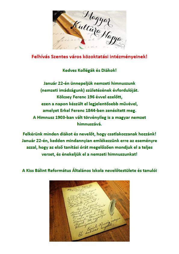 A Kiss Bálint Református Általános Iskola közleményét adjuk közre a Magyar Kultúra Napja alkalmából.