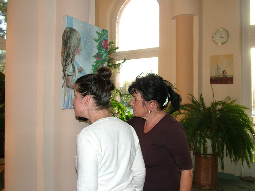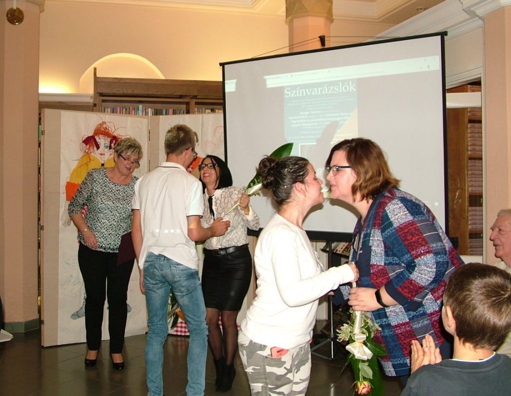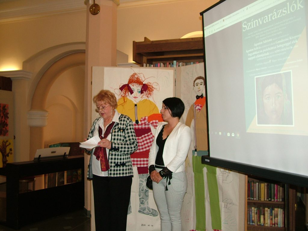 Ezután a Fogyatékkal élők nappali klubjának szakmai vezetője, Boros Éva a kis csapatukról elmondta, hogy 1996-ban 10 fővel alakultak. 10 évvel később már egy pályázatnak köszönhetően, 20 fős lett a csoport, és az idén újabb 4 fő csatlakozott hozzájuk. Óriási utat tettek meg, melynek része a sport, a mozgás és a képzőművészeti alkotómunka területén nyilvánul meg Ágoston Szilvia önkéntes segítségének köszönhetően, aki 1 évvel ezelőtt egy sajátos önkifejezési módszert kezdett megismertetni a klub fiatal tagjaival. Szilvi művészi lelke, kreativitása rejtett értékeket csalogatott elő a csoportból, fejlesztve ily módon a képességeiket. Mit is jelent az ő életükben az alkotás? Örömet, jó kedvet, bizalmat, elégedettséget, barátságot, izgalmat, sikerélményt. A foglalkozások során Szilvi segítsége Márté Mihály, aki a 4. sz. klub tagja. A műfaj változatos volt, a módszerek nagyszerűek, Szilvinek és Vidovicsné Zsuzsának köszönhetően, aki az esélyegyenlőség mentén nagyon nagy mozgásteret biztosított az életük minden területén. A klub szakmai vezetője köszönetét fejezte ki mindezekért.
