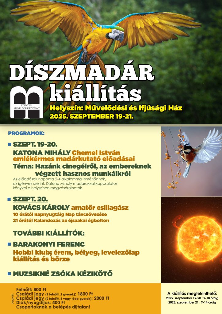 A Szentesi Művelődési Központ munkatársai a nyarat végigdolgozták, így augusztus 25. és szeptember 7. között minden intézményük zárva lesz az ügyeleti rend mellett. A további programokat Urvári Sándor igazgató röviden ismertette: lesz szeptemberben díszmadár kiállítás. A Térfesztivál helyett magánszervezésben indul új program, amelyre érdemes lesz figyelni. Szeptember 9-től lehet majd regisztrációs jegyeket váltani az idősek napi gálára, vagy Alföldi Róbert könyvbemutató pódiumbeszélgetésére és Steigervald Krisztián generációkutató előadására. Bejelentette, hogy az együttműködő partnerek számára minden támogatást megadnak a továbbiakban is.