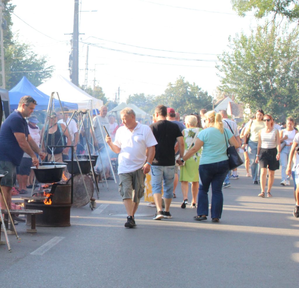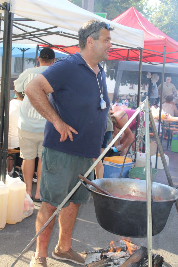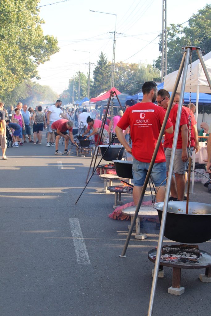 A főzősorok között nem csak a füst, a hangulat is élénk volt. A csapatok egyediségre törekvését ezúttal zenei ízlésük gyakorlati megmutatásával is élvezhettük. Az egyik helyen a „Sárgul már a kukoricaszár…” szólt, míg odébb egy másik csapat roma muzsikára táncolt, majd távolabb a Vadrózsák énekegyüttes népdalokat énekelt, s persze több csapat disco muzsikára mulatott. Ezen a szeptember hatodikán tehát a főzőcsapatok egyedisége talán még figyelmet parancsolóbb volt, mint korábban, hiszen ki-ki az egyen-pólójához maradt hű, míg mások, pl. a Rotarysok a teríték, sátor díszítés terén alkottak nagyot.
