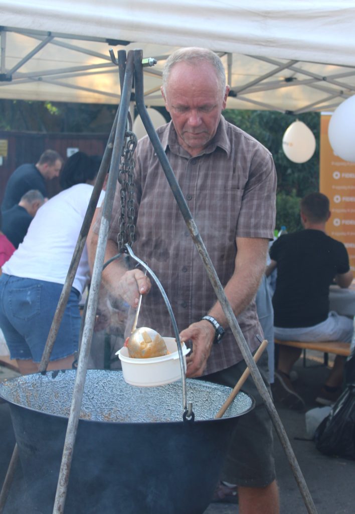 S persze, hogy nem mehettünk el szó nélkül Szentes Város Önkormányzata bográcsai mellett sem. Szabó Zoltán Ferenc polgármester 40 literes bográcsból osztotta a príma hagyományos szentesi finomságot, amely rizzsel, két fajta kolbászkarikákkal készült. Különlegessége, hogy kész rántottát is tettek bele, ami nem csak látványosan gusztusossá, hanem még finomabbá tette a kedvelt ételünket.
