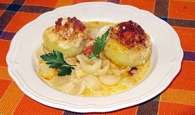 Meghámozunk nyolc zsenge karalábét, belsejüket kivájjuk.