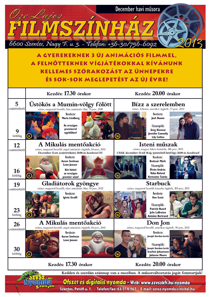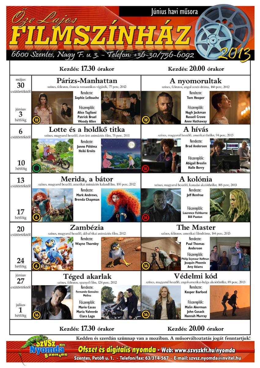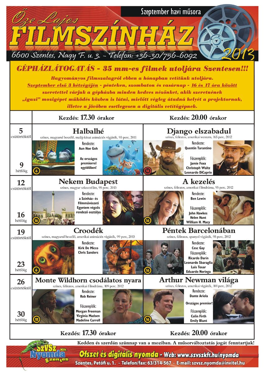 Október 3-7. 17,30 A nagy füzet színes, magyarul beszélő, német-francia-magyar-osztrák háborús filmdráma, 109 perc, 2013. Rendező: Szász János. Szereplők: Gyémánt László (egyik iker), Gyémánt András (másik iker), Molnár Piroska (nagymama), Bognár Gyöngyvér (anya), Ulrich Matthes (apa).