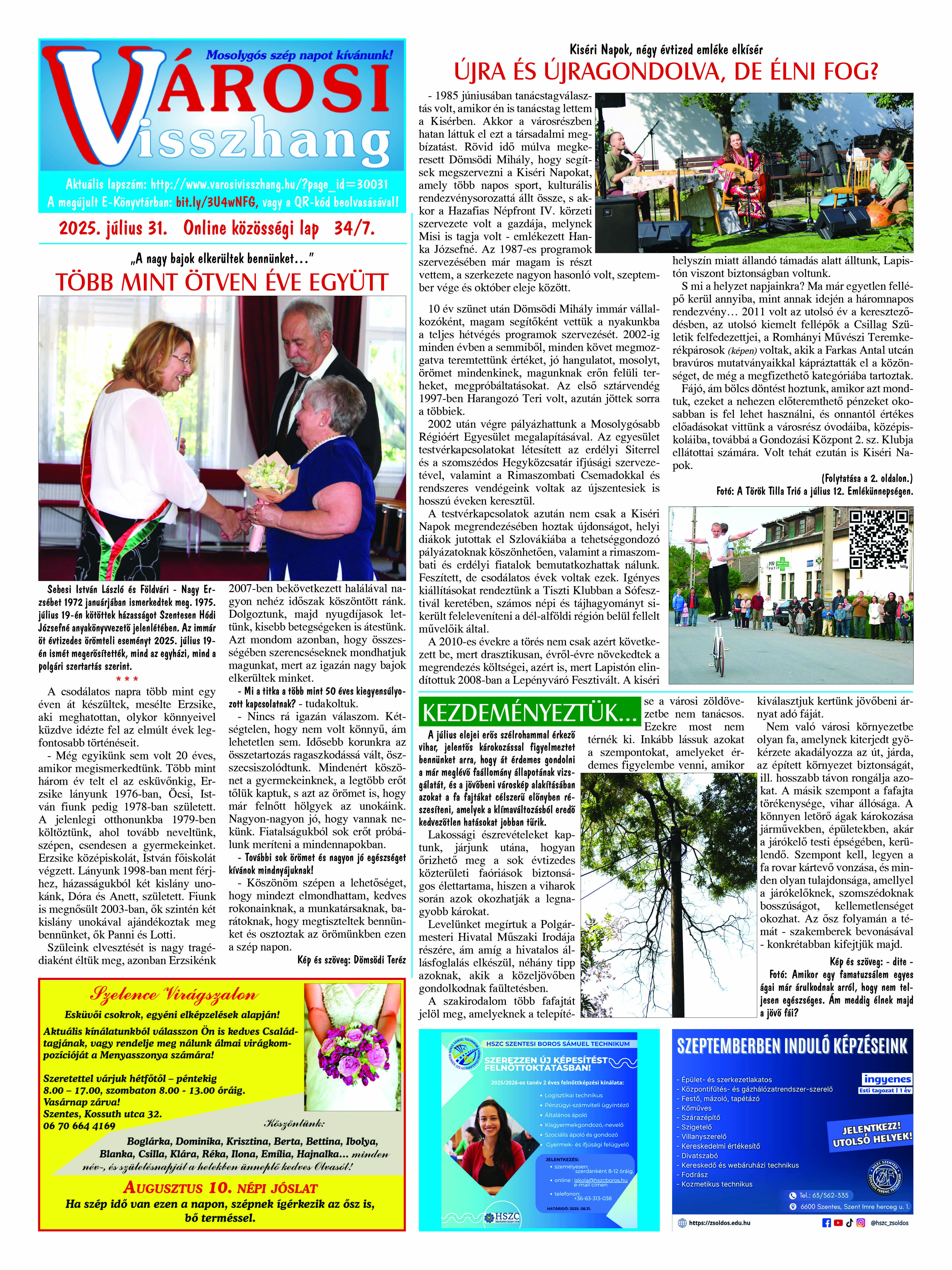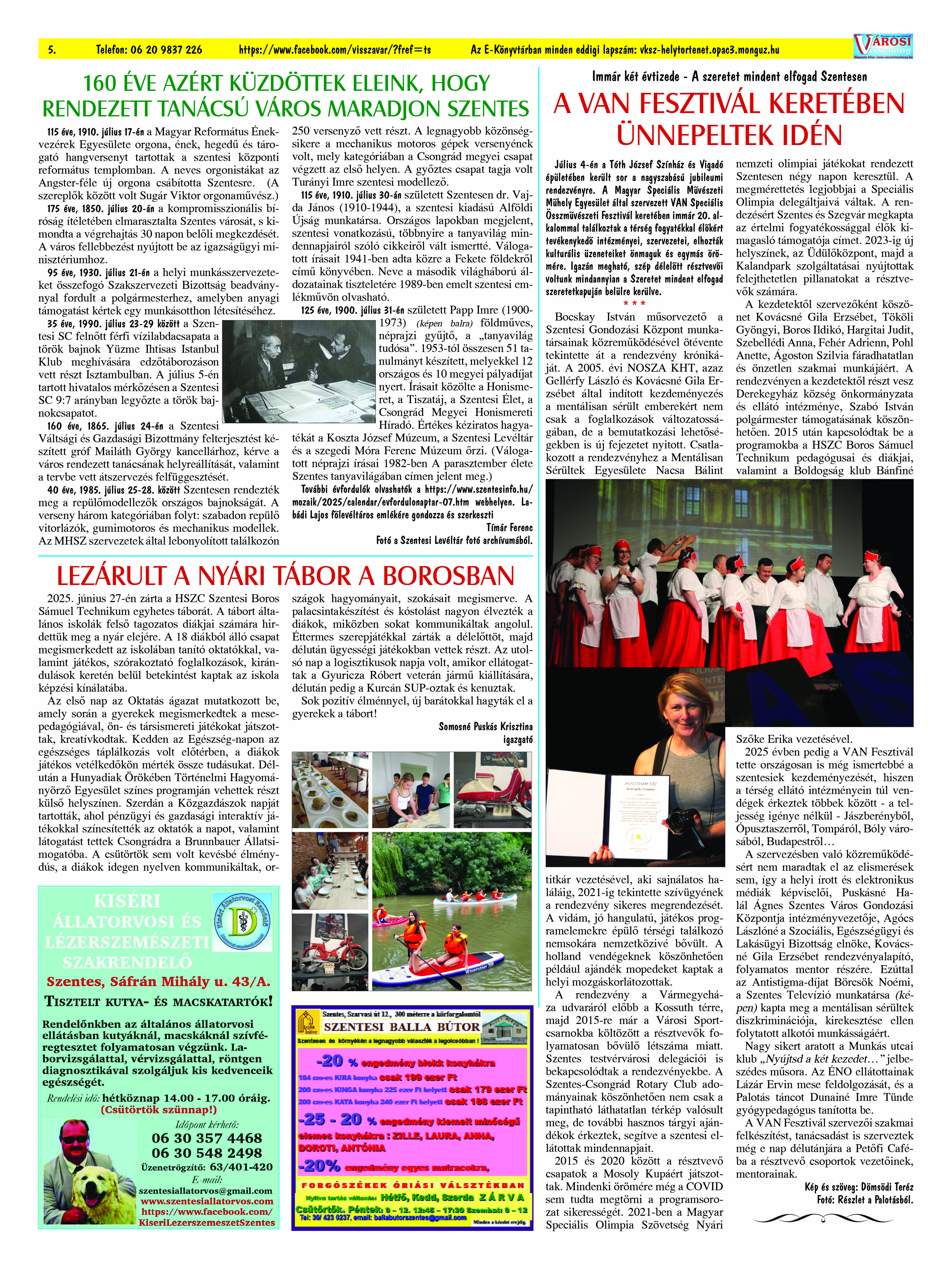 Ön a Városi Visszhang 2025. július 30-án megjelent 7. lapszámát olvassa. (Nagyításért katt a képre!) Elérhetőségünk az E-könyvtárban: bit.ly/3U4wNFG az összes eddig megjelent lapszámunk pedig (1991 és 2025 között) a https://vksz-helytortenet.opac3.monguz.hu weboldalon érhető el. Kellemes és hasznos böngészést kívánunk a megújult E-könyvtárban is.