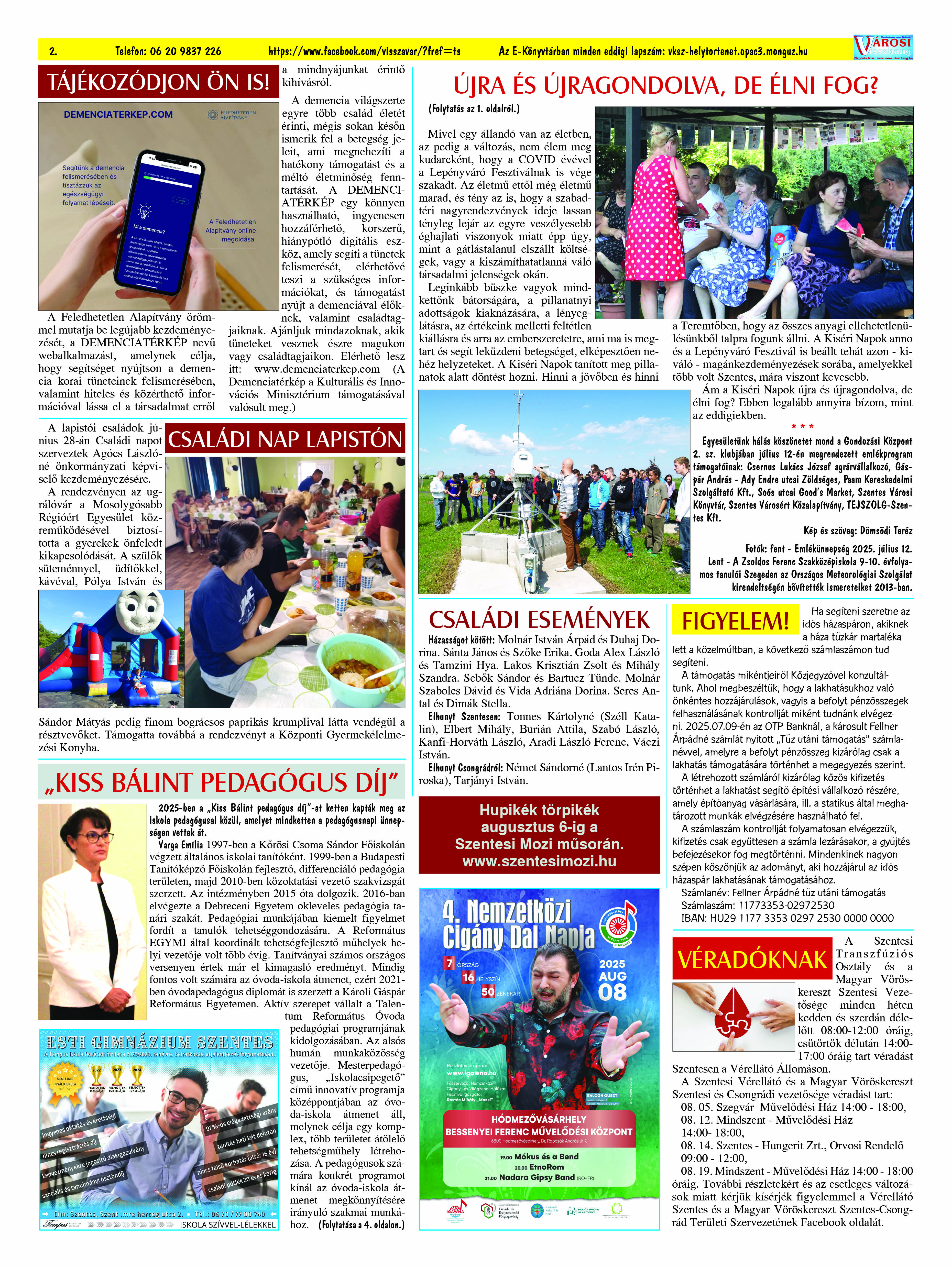 Ön a Városi Visszhang 2025. augusztus 28-án megjelent 8. lapszámát olvassa. (Nagyításért katt a képre!) Elérhetőségünk az E-könyvtárban: bit.ly/4oSN9zb  az összes eddig megjelent lapszámunk pedig (1991 és 2025 között) a https://vksz-helytortenet.opac3.monguz.hu weboldalon érhető el. Kellemes és hasznos böngészést kívánunk a megújult E-könyvtárban is.
