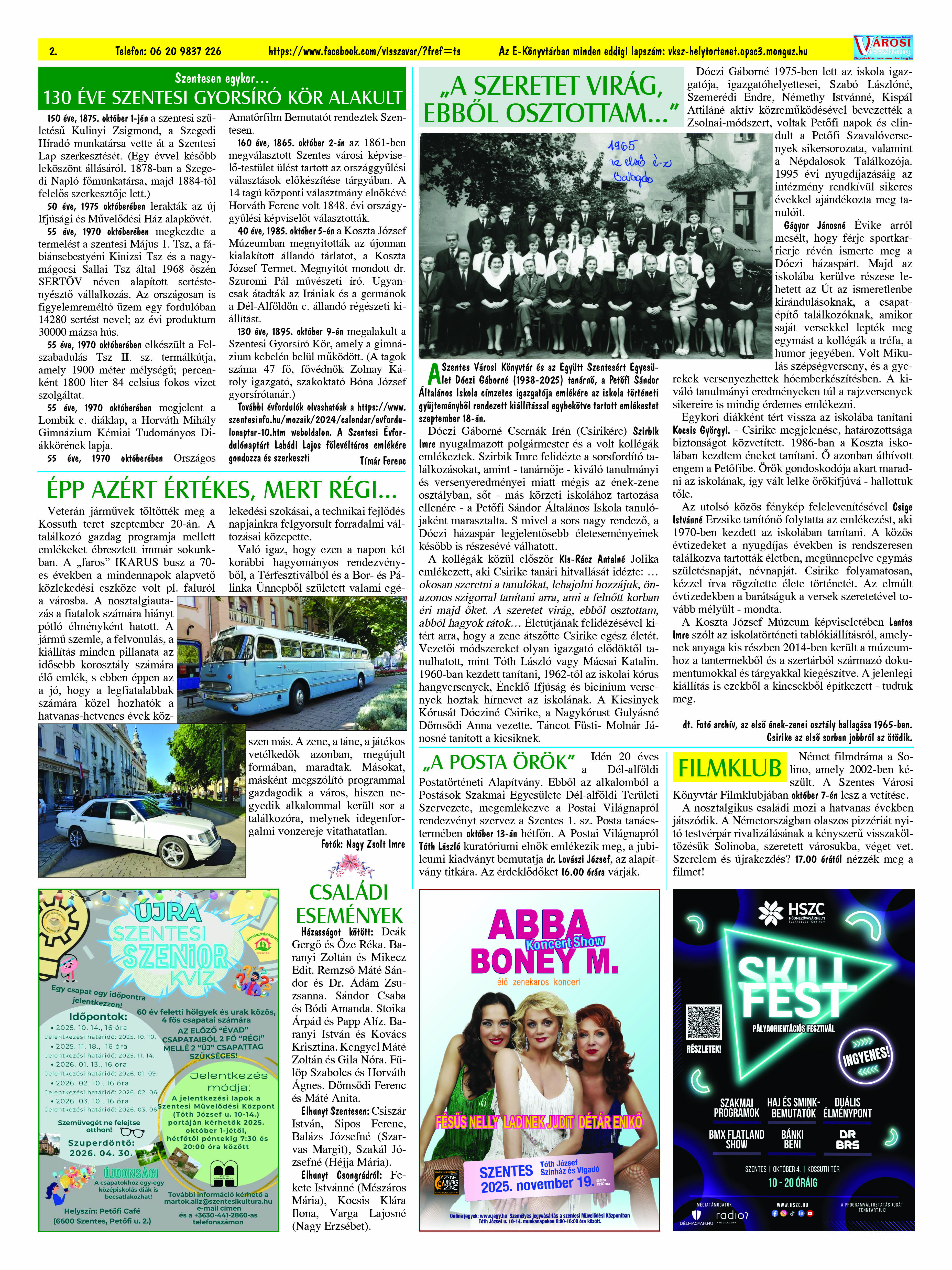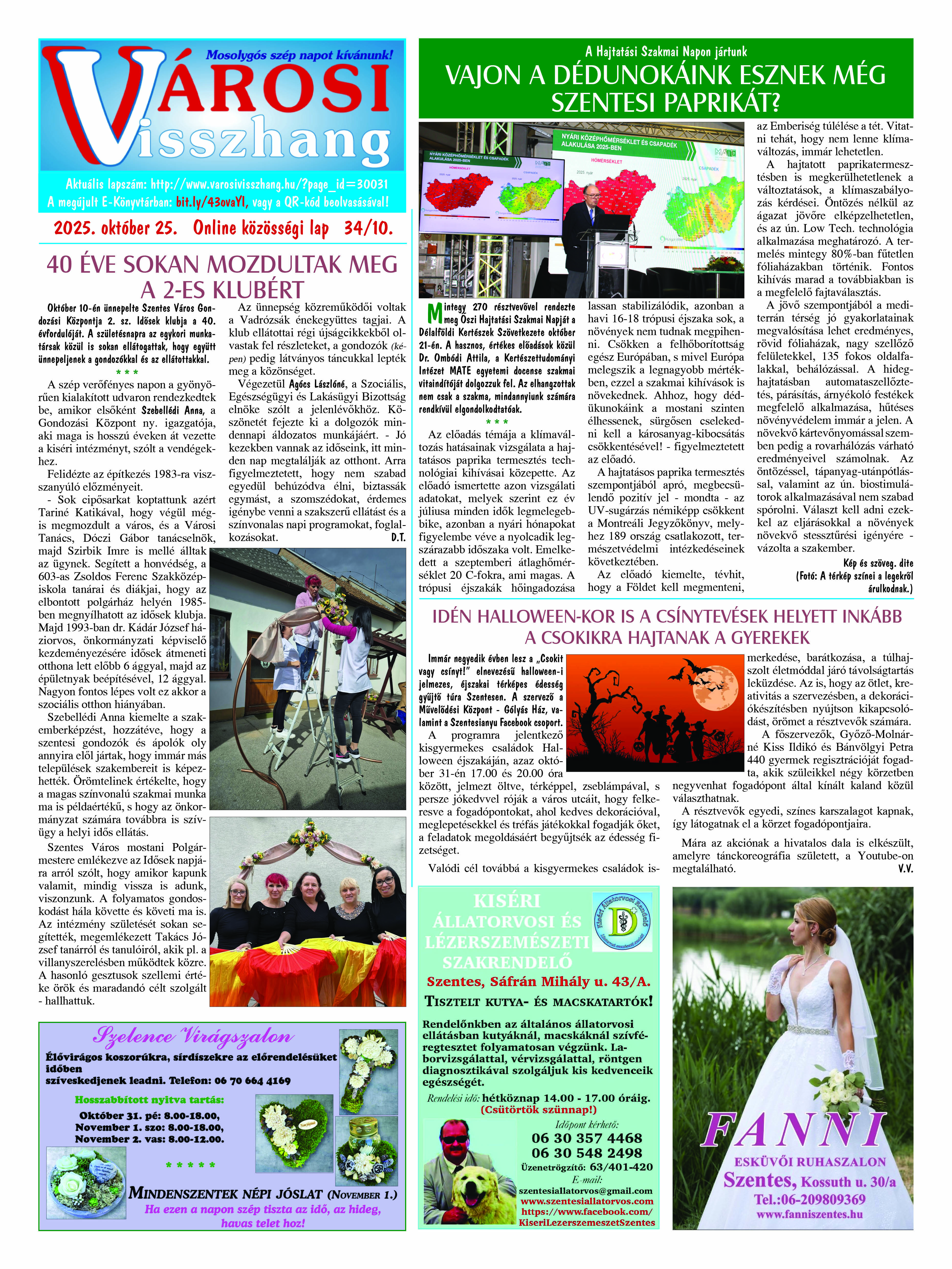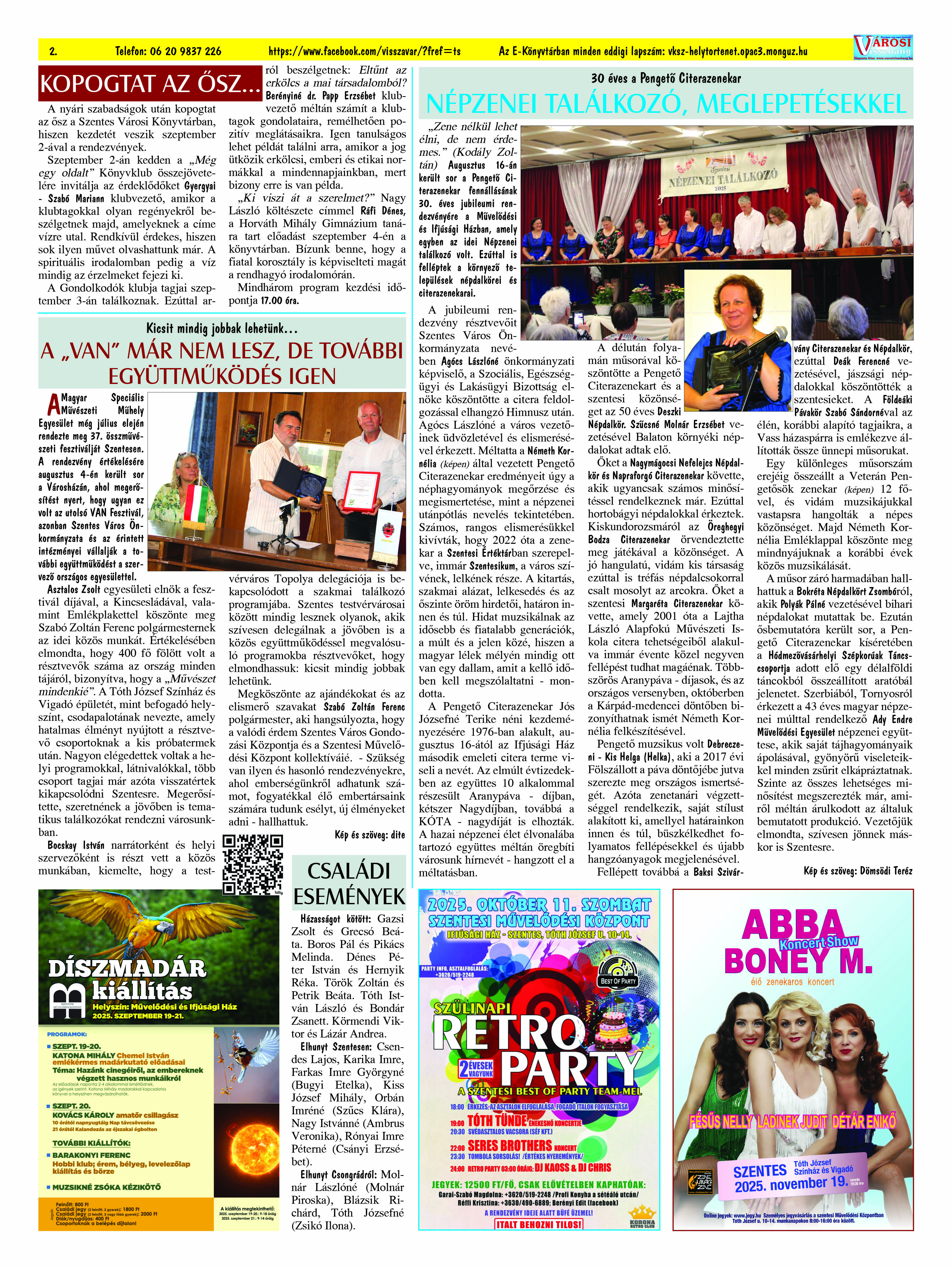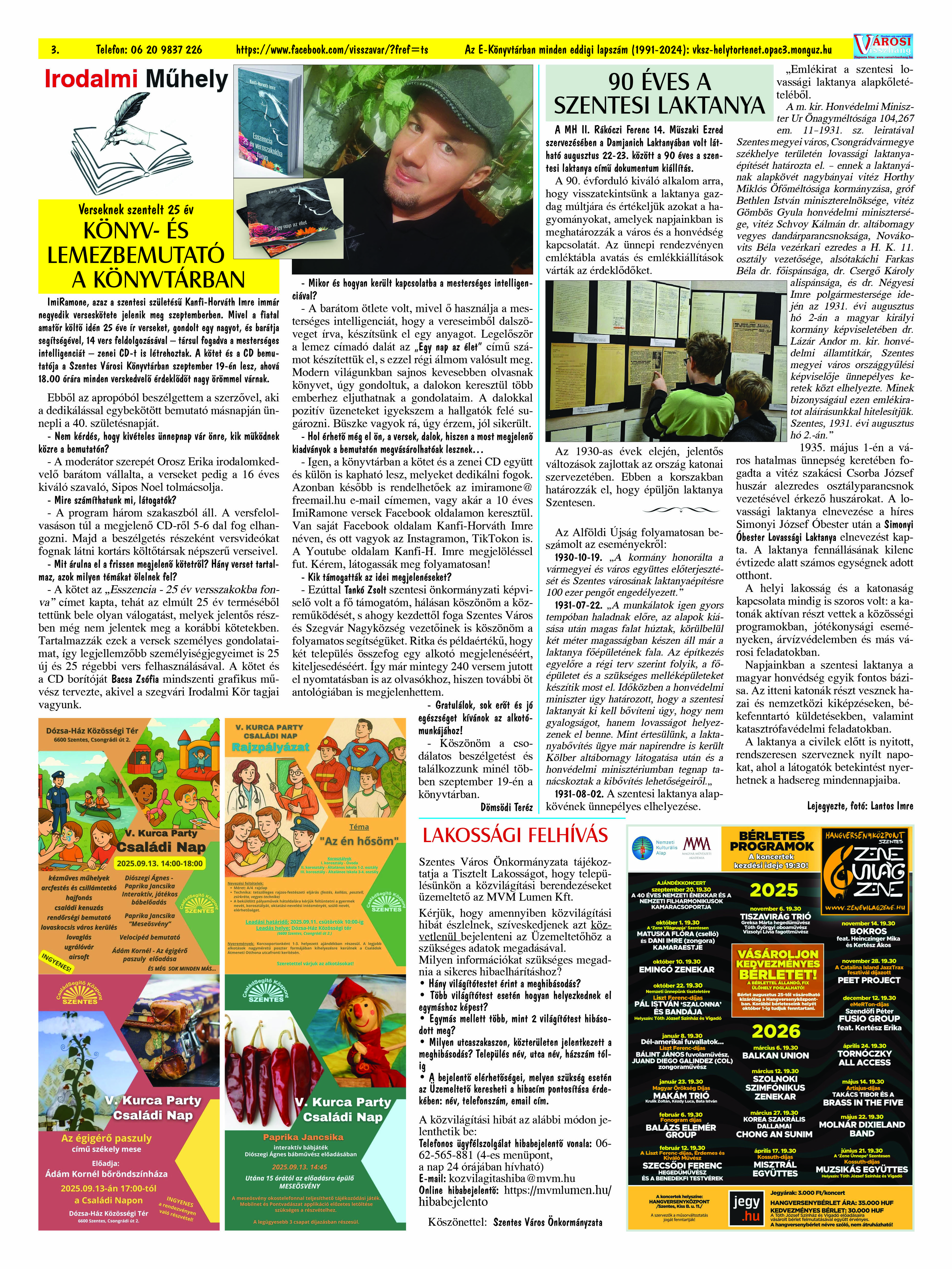 Ön a Városi Visszhang 2025. szeptember 29-én megjelent 9. lapszámát olvassa. (Nagyításért katt a képre!) Elérhetőségünk az E-könyvtárban: bit.ly/4nDJLqQ  az összes eddig megjelent lapszámunk pedig (1991 és 2025 között) a https://vksz-helytortenet.opac3.monguz.hu weboldalon érhető el. Kellemes és hasznos böngészést kívánunk a megújult E-könyvtárban is.