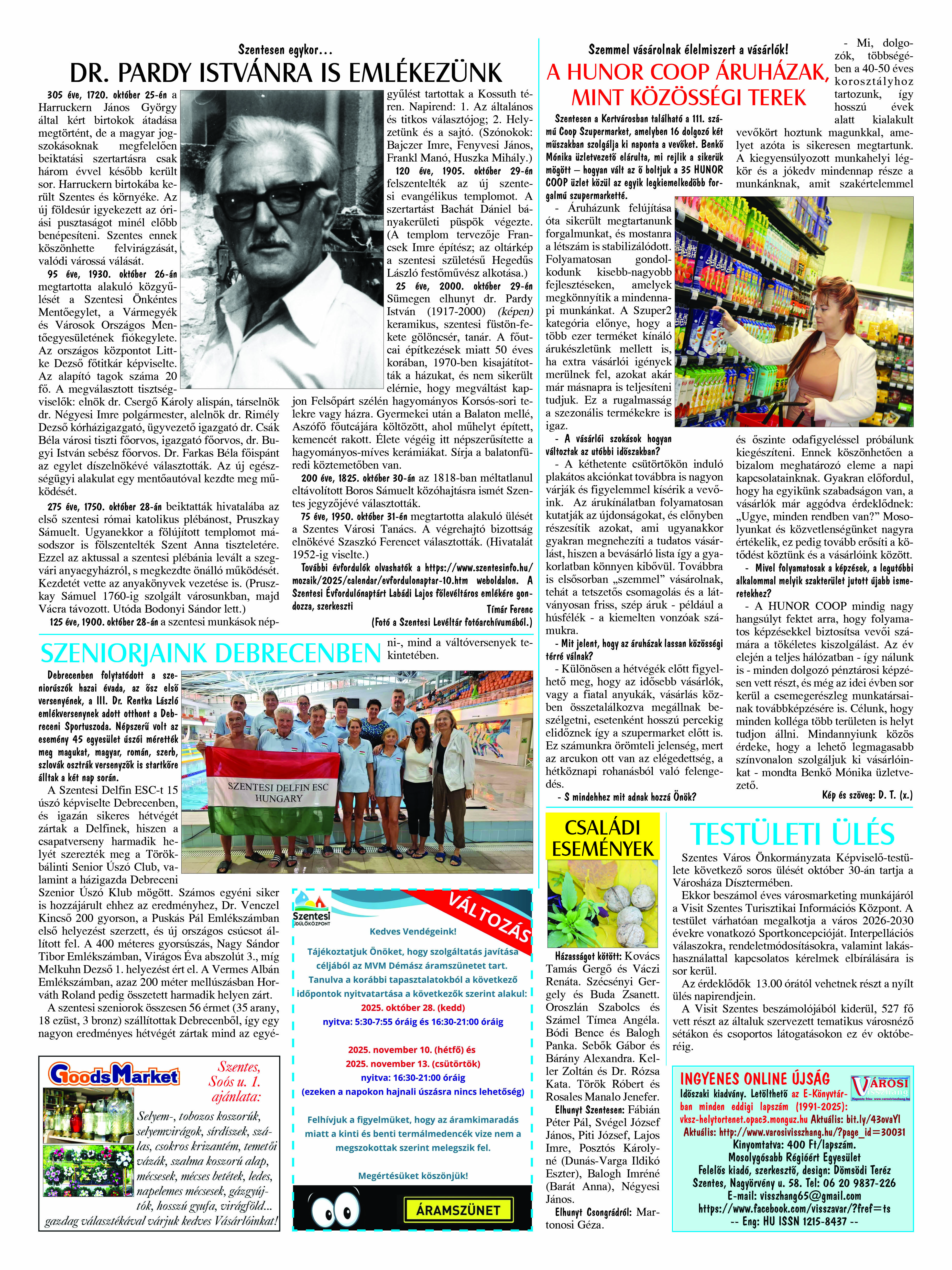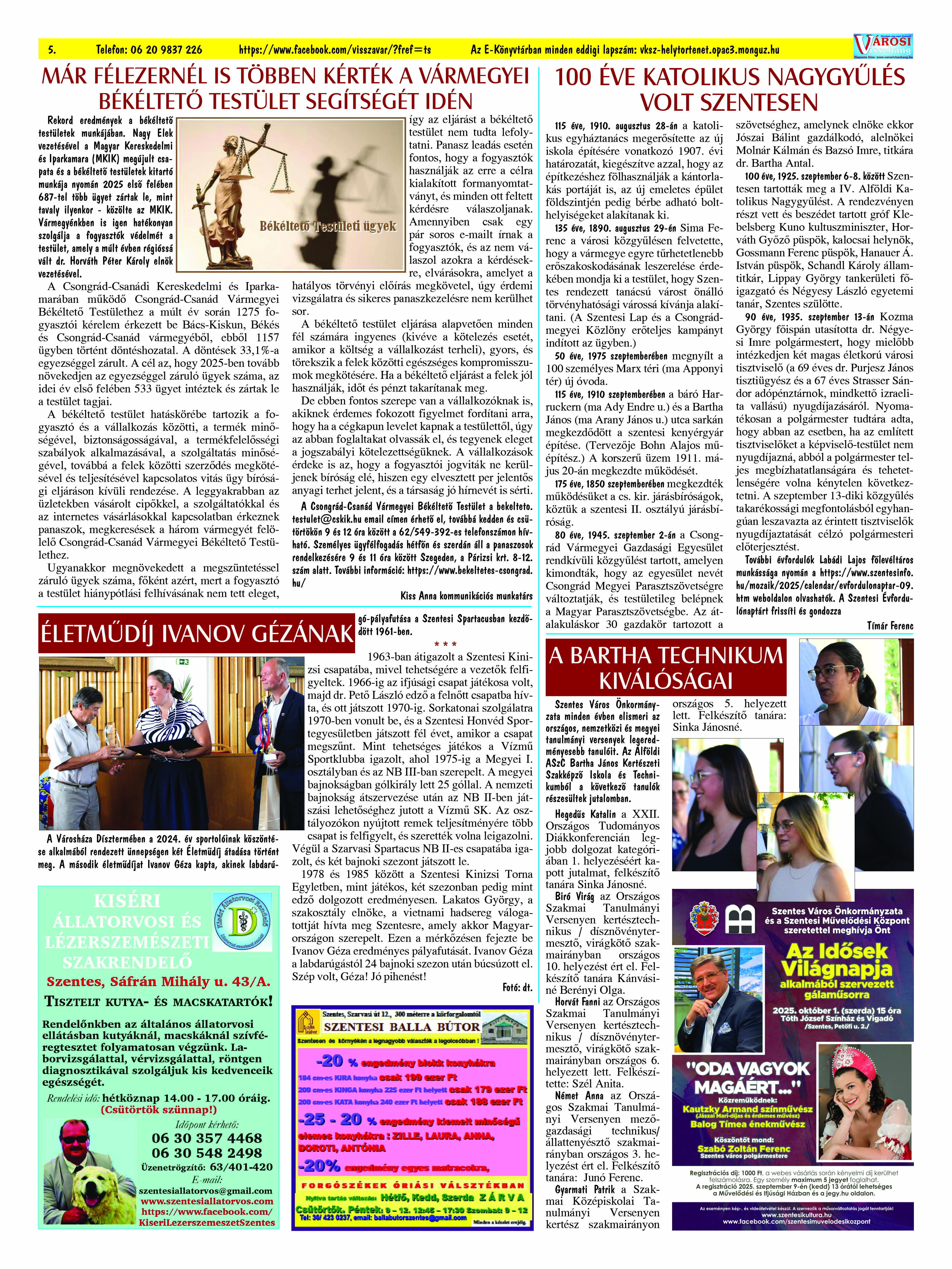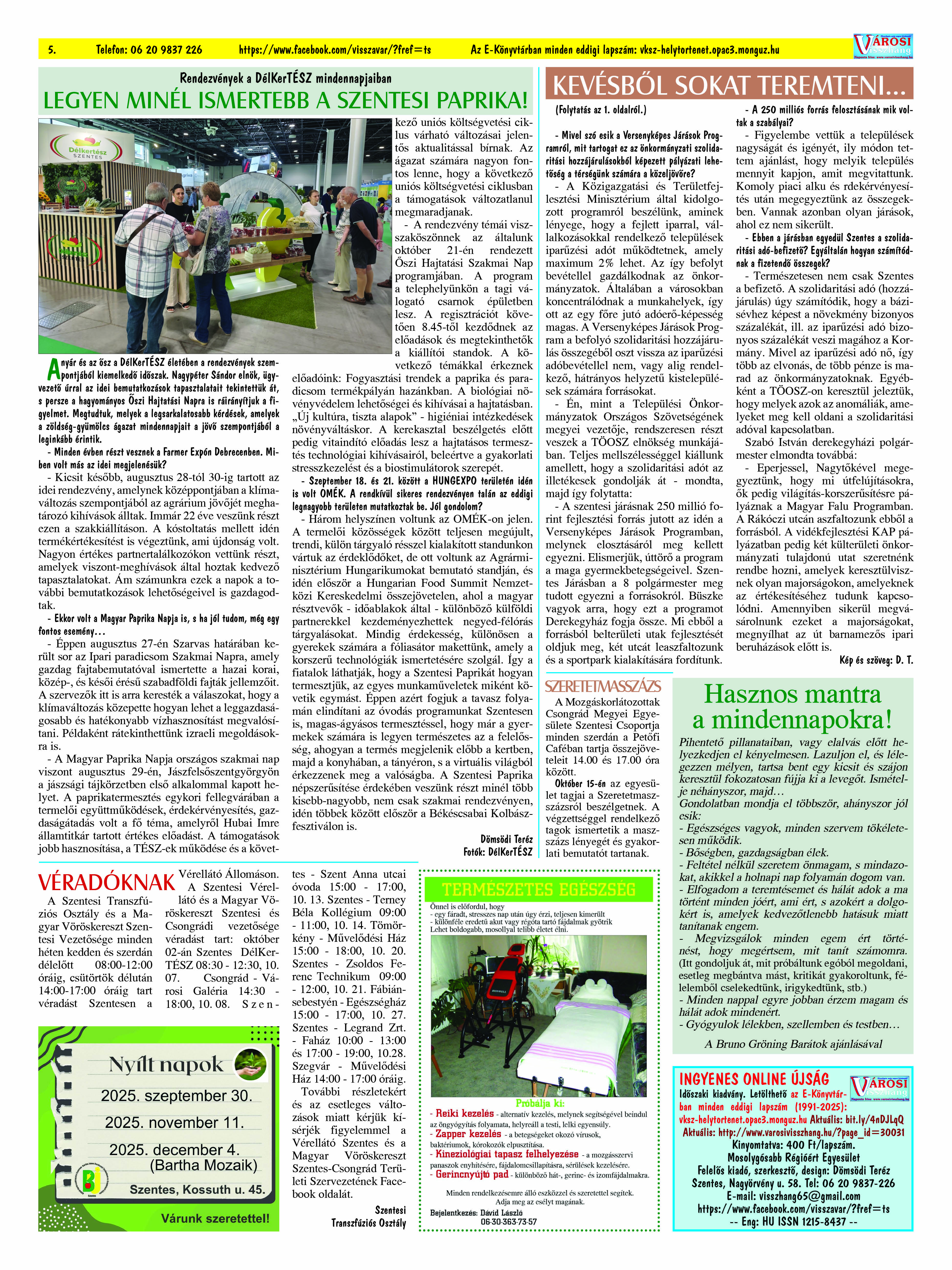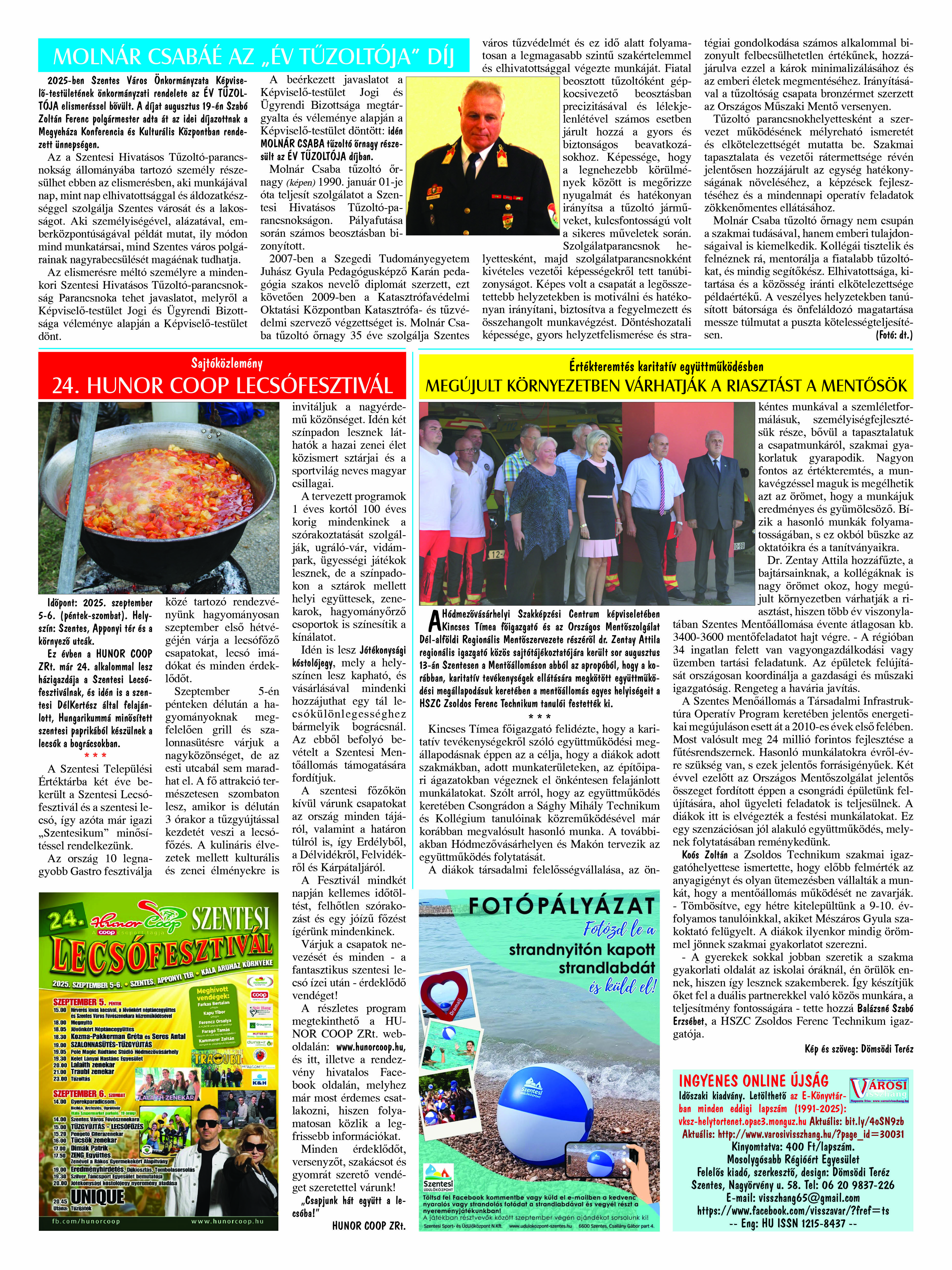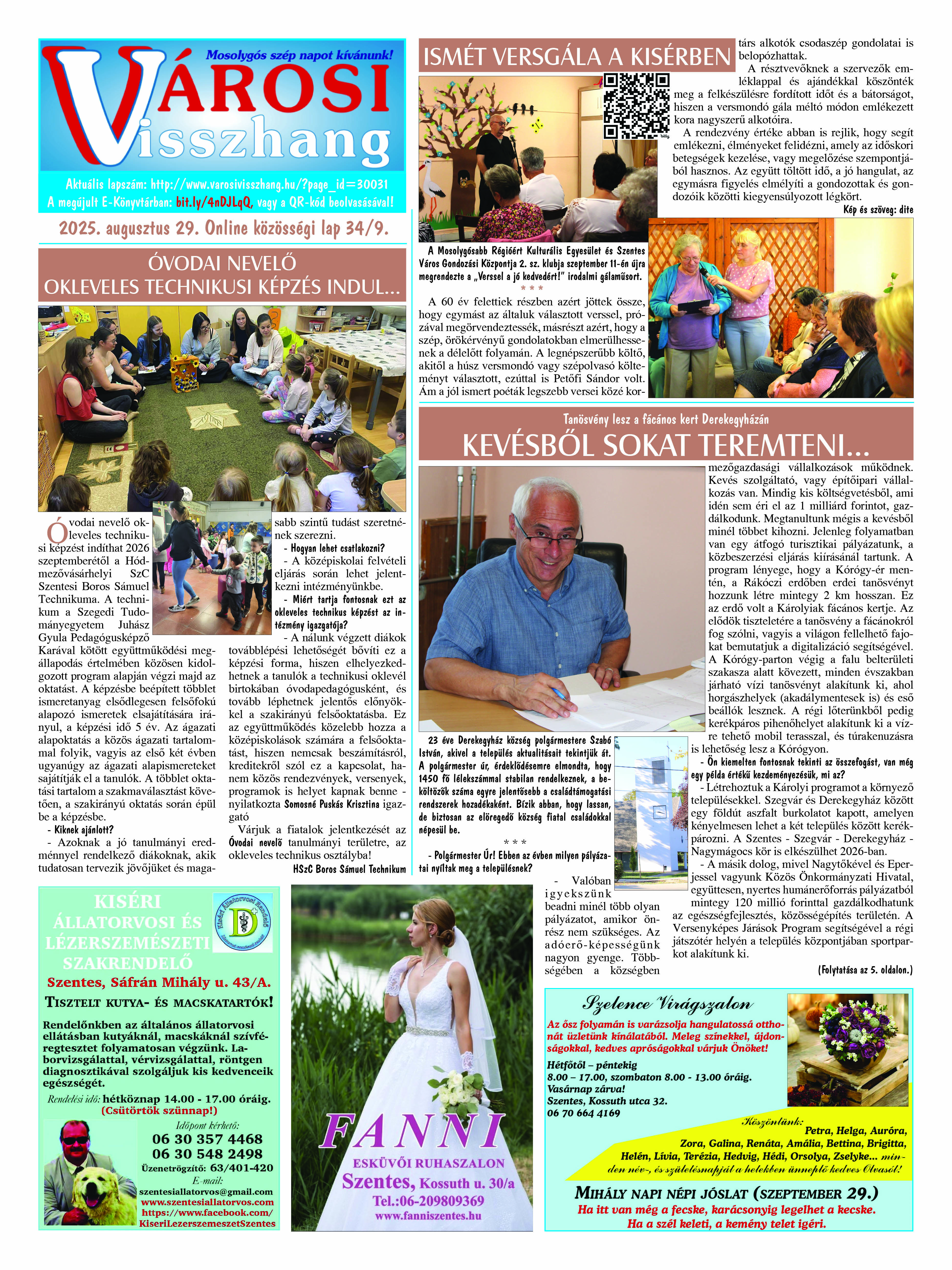 Ön a Városi Visszhang 2025. szeptember 29-én megjelent 9. lapszámát olvassa. (Nagyításért katt a képre!) Elérhetőségünk az E-könyvtárban: bit.ly/4nDJLqQ  az összes eddig megjelent lapszámunk pedig (1991 és 2025 között) a https://vksz-helytortenet.opac3.monguz.hu weboldalon érhető el. Kellemes és hasznos böngészést kívánunk a megújult E-könyvtárban is.