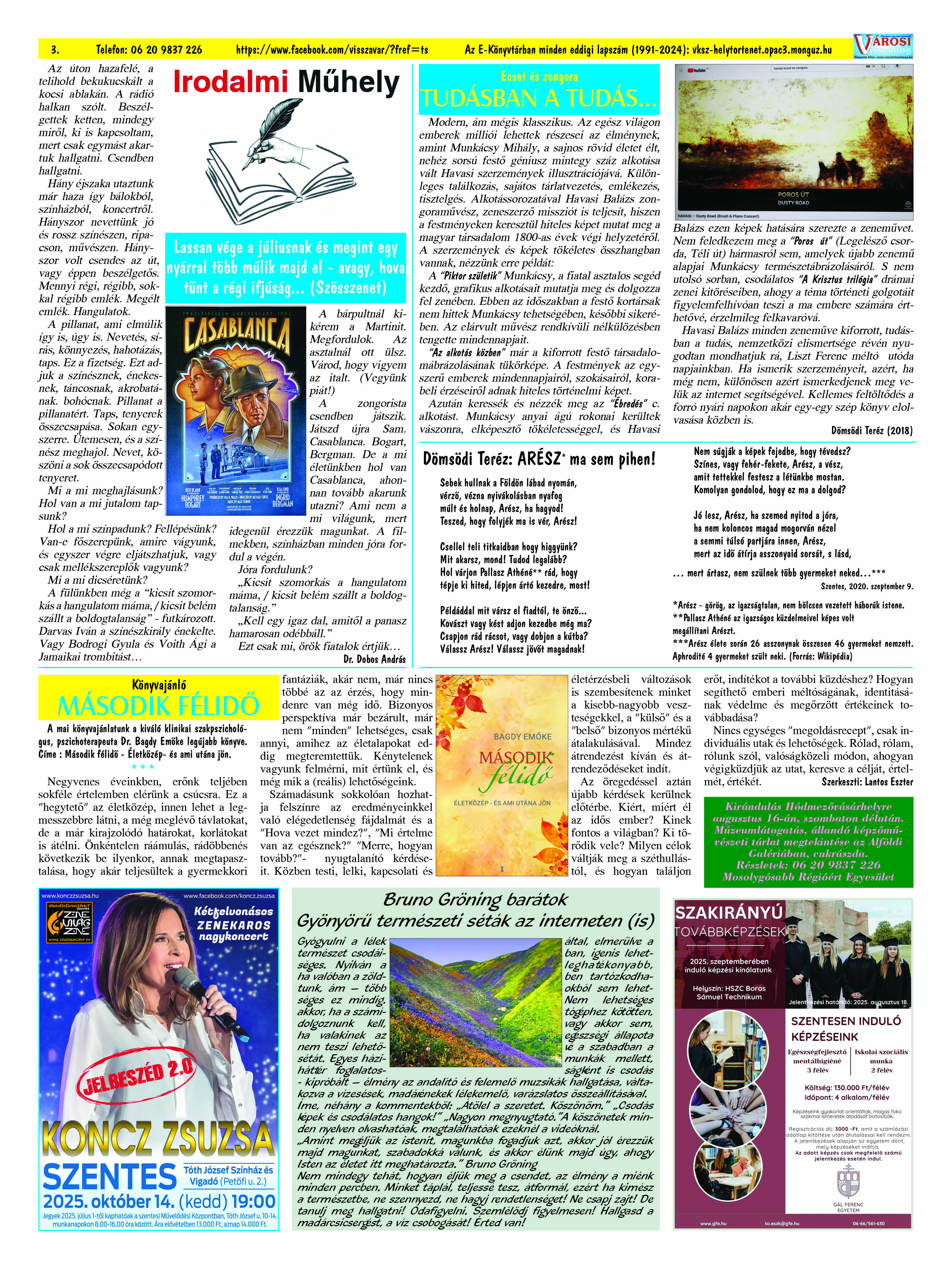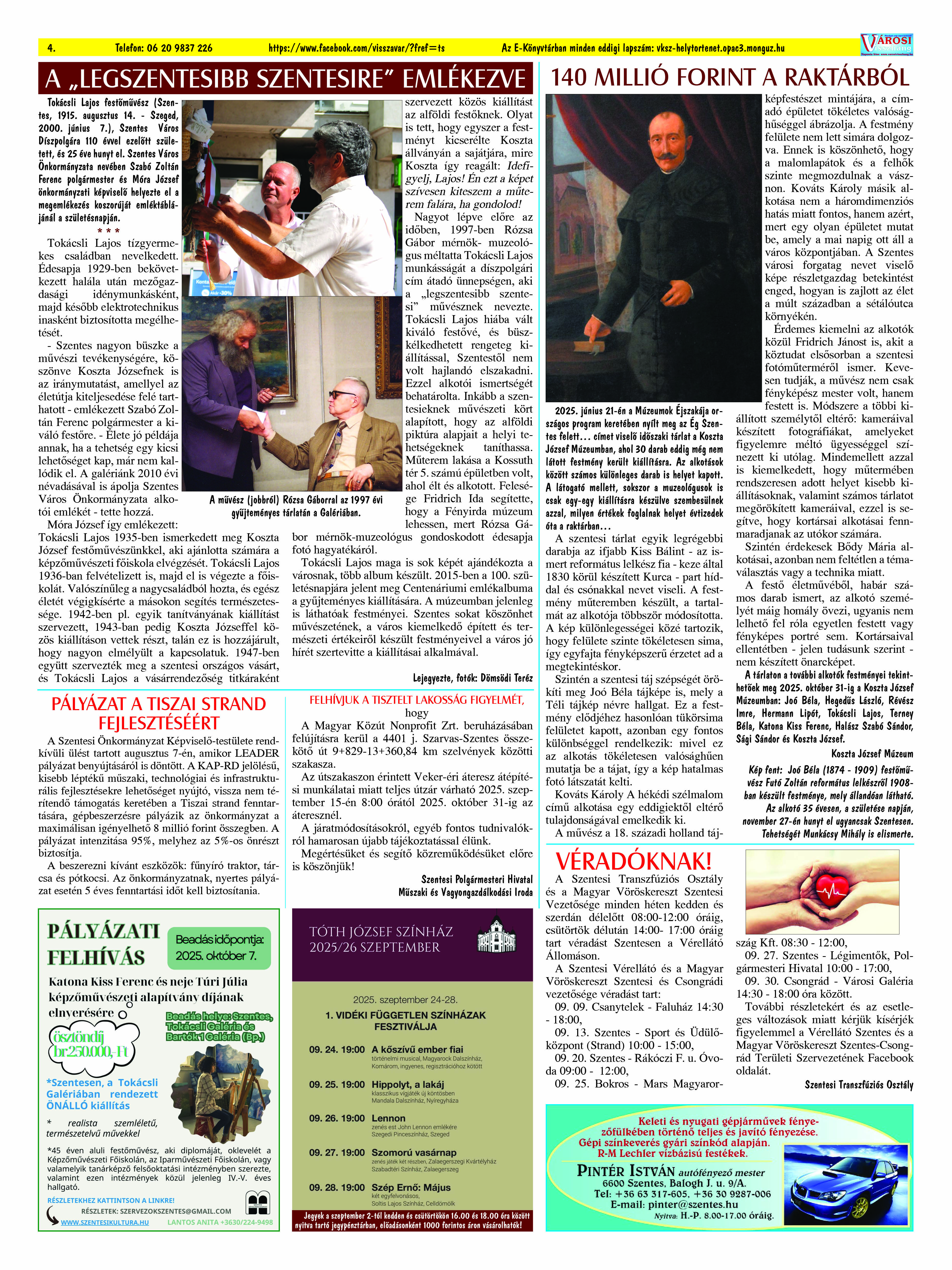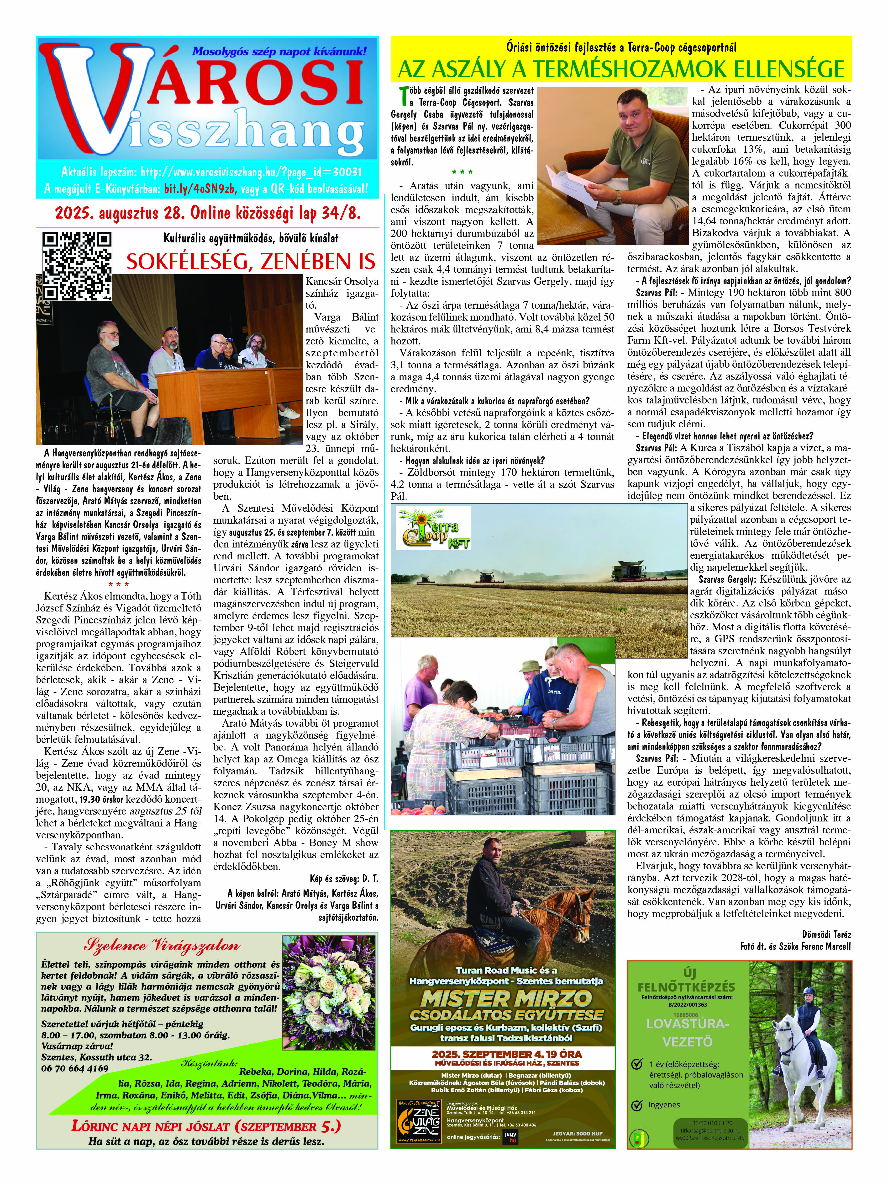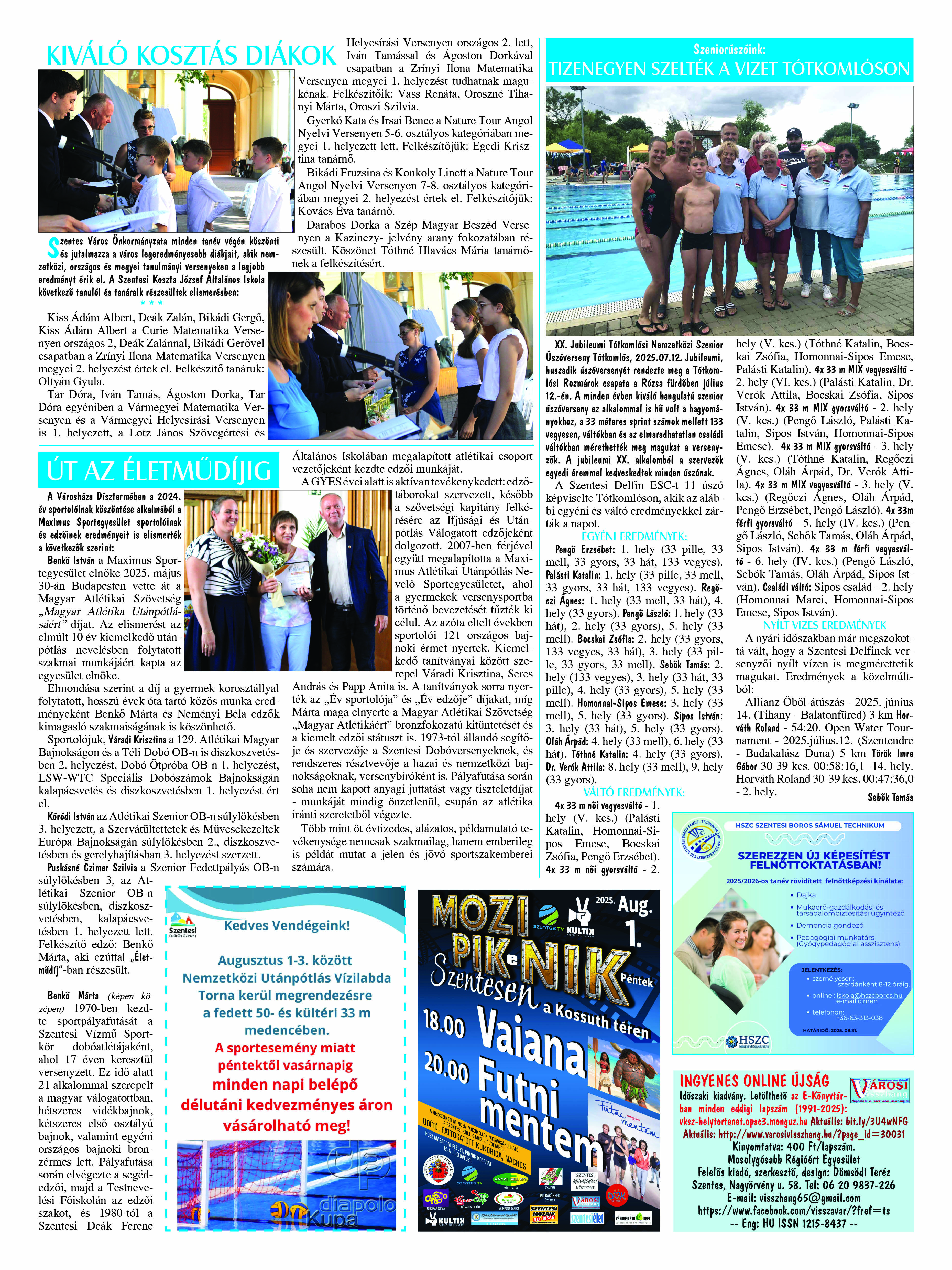 Ön a Városi Visszhang 2025. szeptember 29-én megjelent 9. lapszámát olvassa. (Nagyításért katt a képre!) Elérhetőségünk az E-könyvtárban: bit.ly/4nDJLqQ  az összes eddig megjelent lapszámunk pedig (1991 és 2025 között) a https://vksz-helytortenet.opac3.monguz.hu weboldalon érhető el. Kellemes és hasznos böngészést kívánunk a megújult E-könyvtárban is.