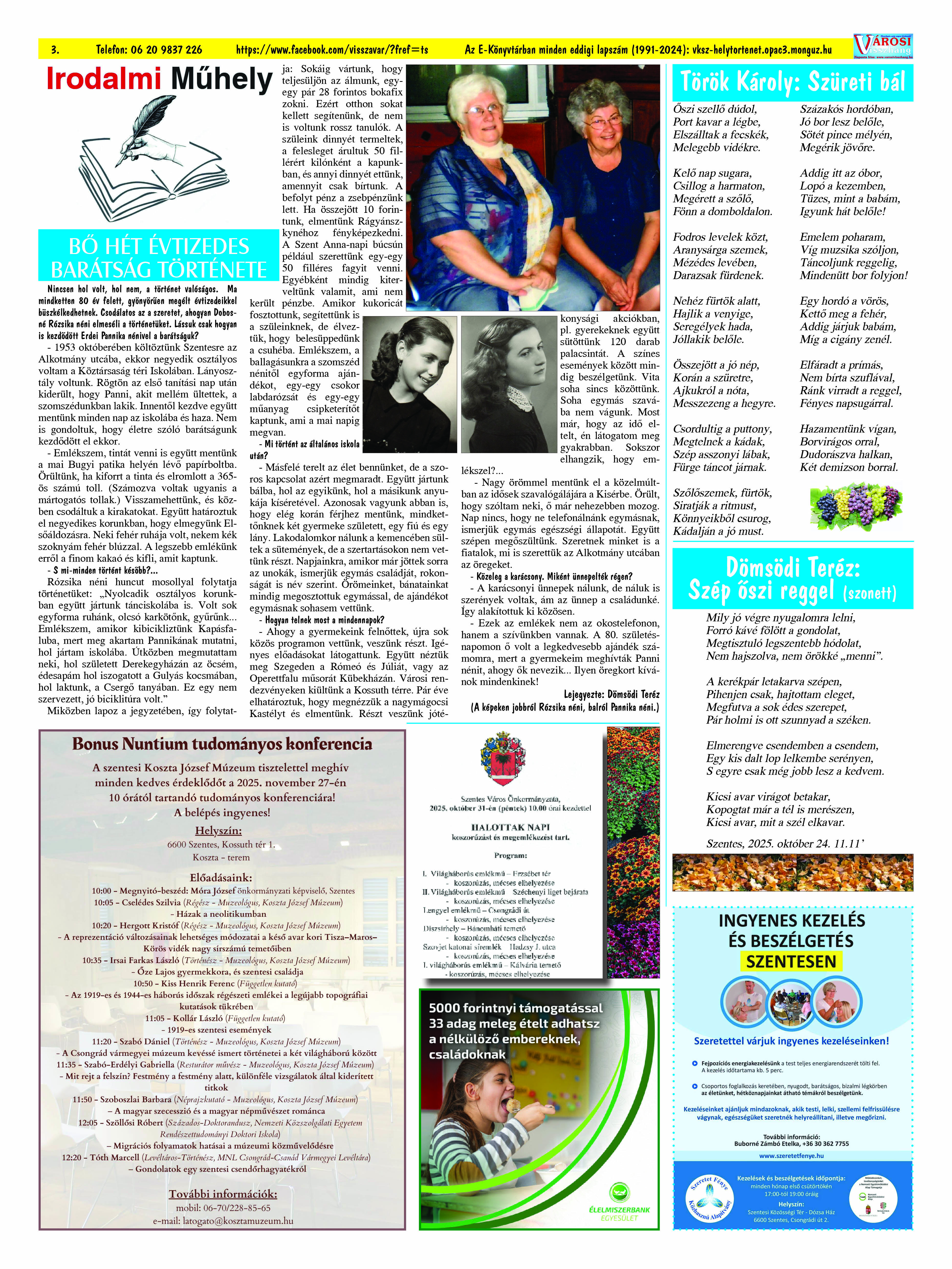 Ön a Városi Visszhang 2025. október 25-én megjelent 10. lapszámát olvassa. (Nagyításért katt a képre!) Elérhetőségünk az E-könyvtárban: https://bit.ly/3WvsX9P  az összes eddig megjelent lapszámunk pedig (1991 és 2025 között) a https://vksz-helytortenet.opac3.monguz.hu weboldalon érhető el. Kellemes és hasznos böngészést kívánunk a megújult E-könyvtárban is.