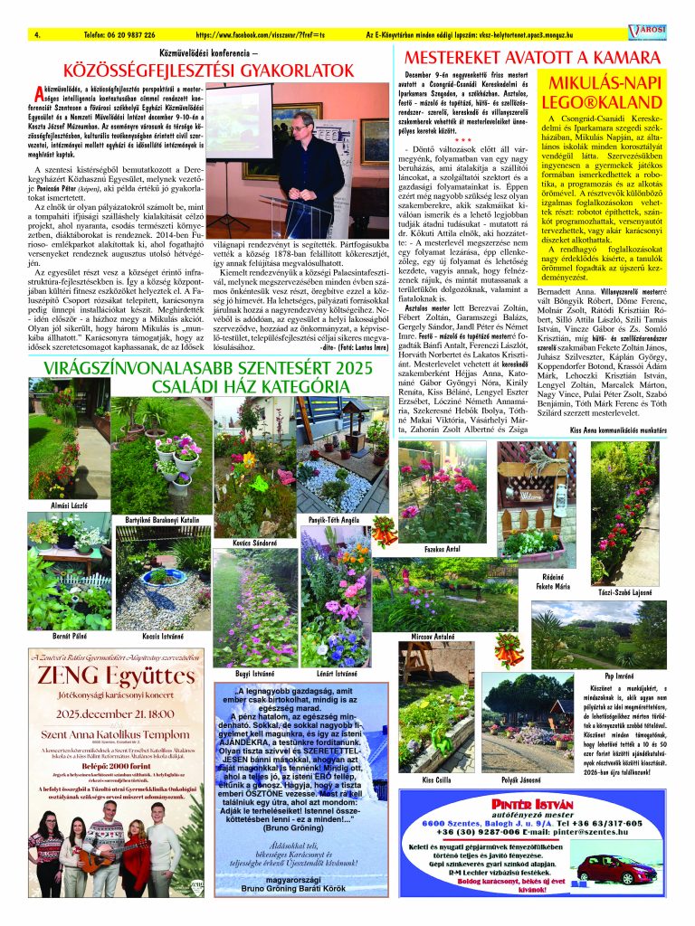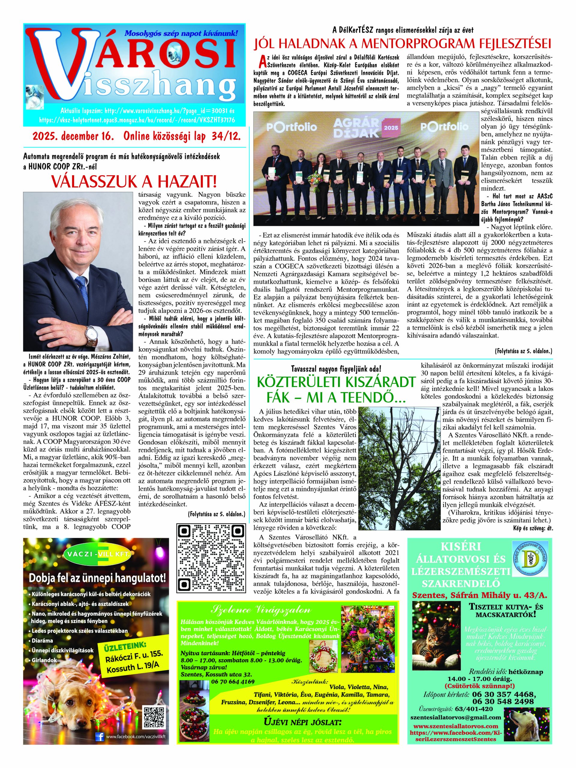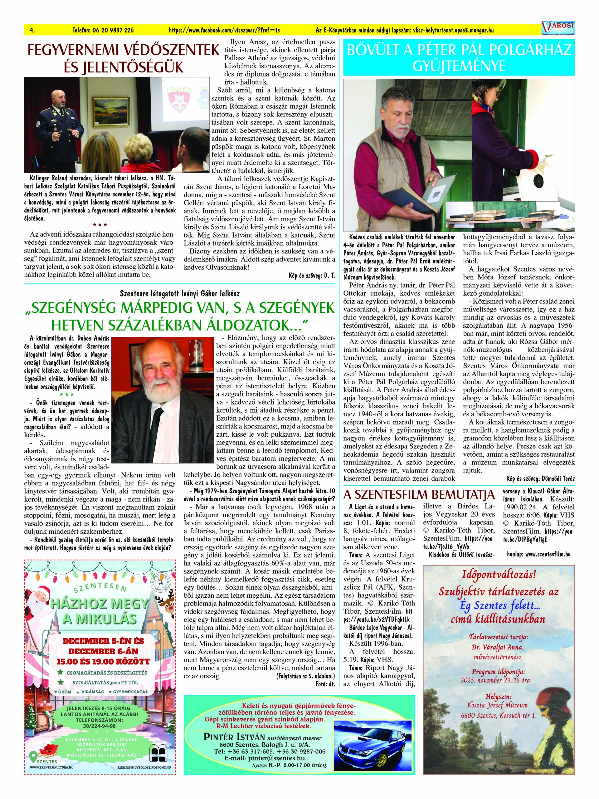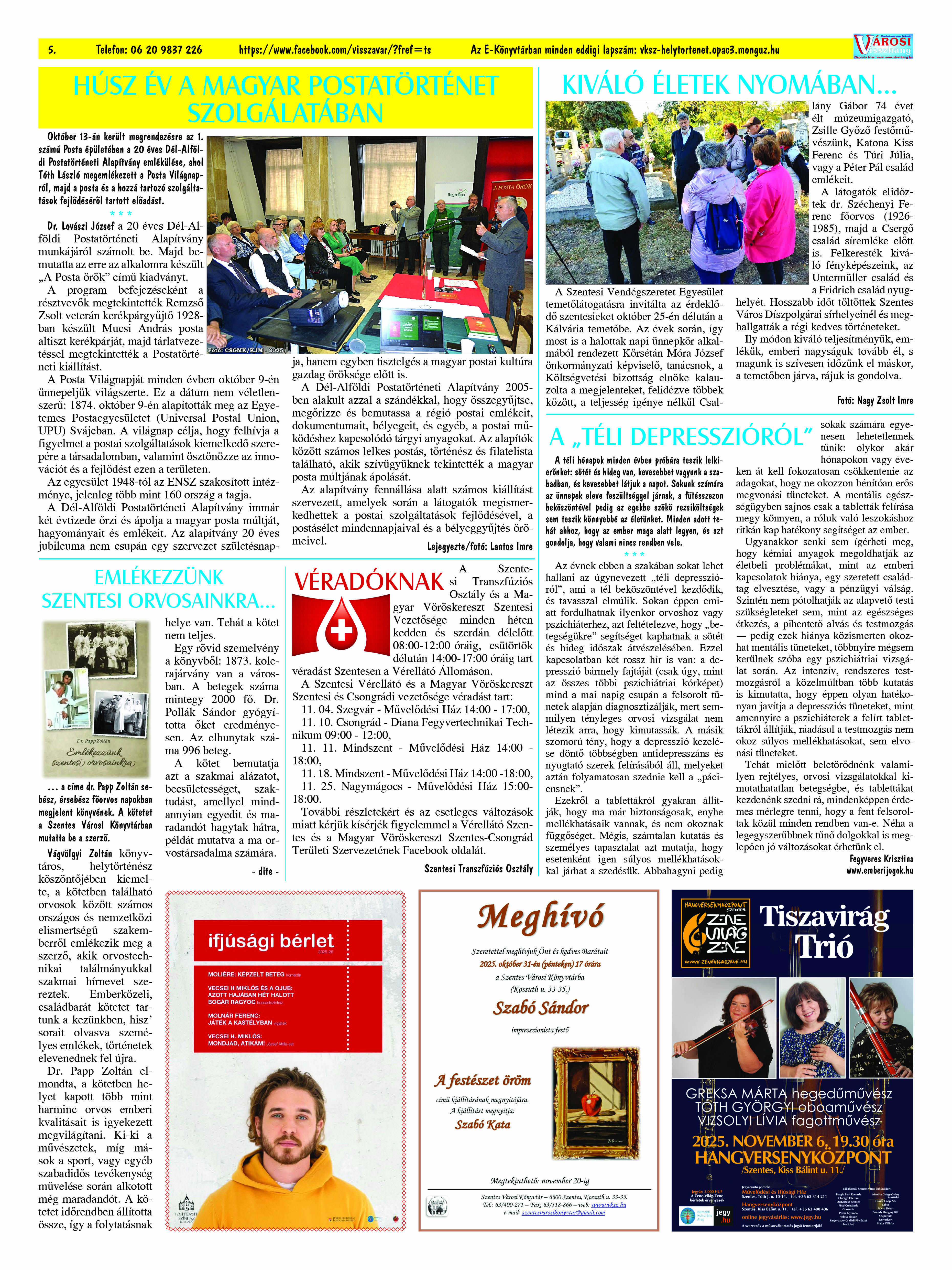 Ön a Városi Visszhang 2025. december 16-án megjelent 12. lapszámát olvassa. (Nagyításért katt a képre!) Elérhetőségünk az E-könyvtárban: https://vksz-helytortenet.opac3.monguz.hu/hu/record/-/record/VKSZHT37176, az összes eddig megjelent lapszámunk pedig (1991 és 2025 között) a https://vksz-helytortenet.opac3.monguz.hu weboldalon érhető el. Kellemes és hasznos böngészést kívánunk a megújult E-könyvtárban is.