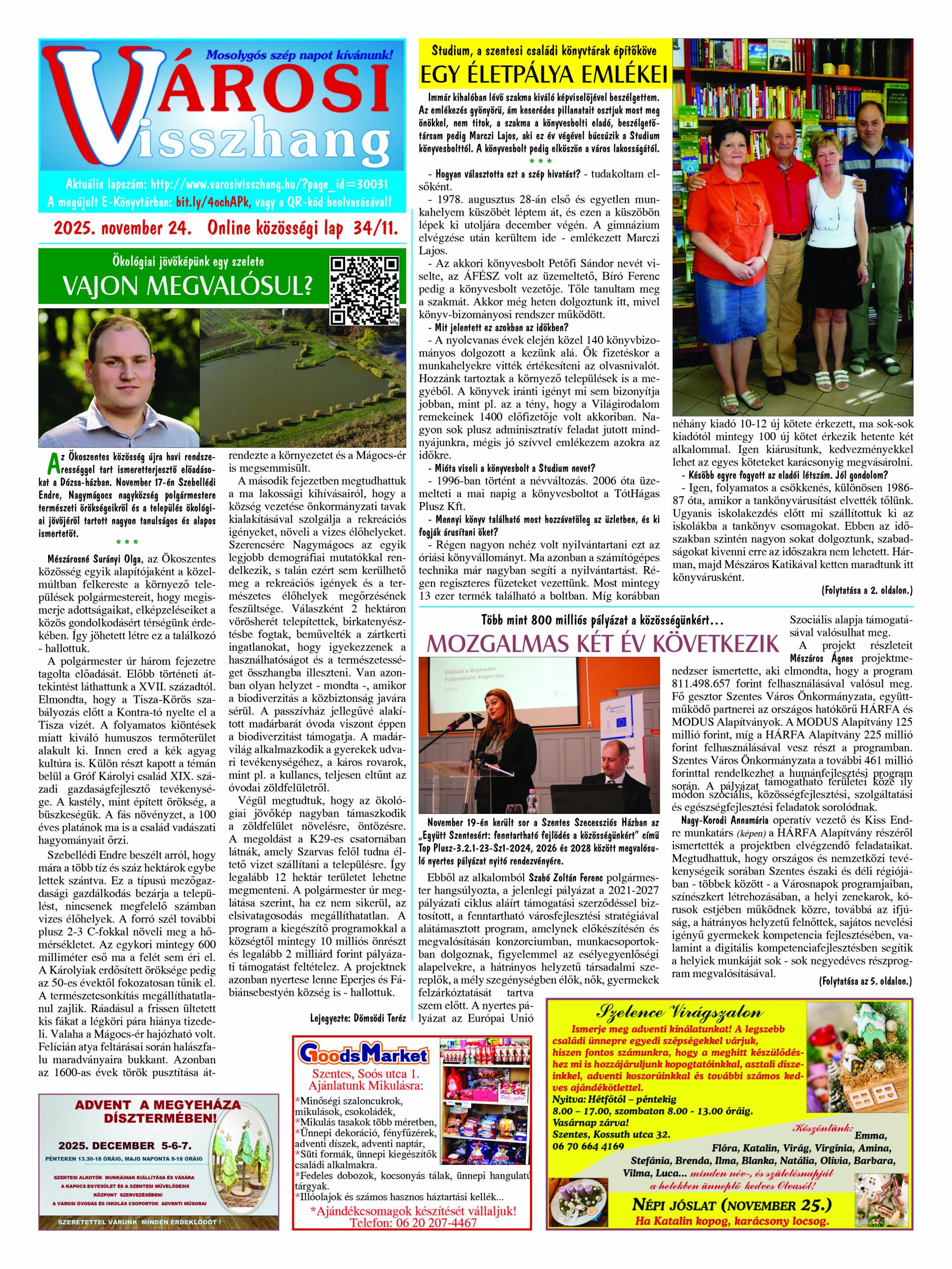 Ön a Városi Visszhang 2025. november 24-én megjelent 11. lapszámát olvassa. (Nagyításért katt a képre!) Elérhetőségünk az E-könyvtárban: https://bit.ly/4ochAPk  az összes eddig megjelent lpszámunk pedig (1991 és 2025 között) a https://vksz-helytortenet.opac3.monguz.hu weboldalon érhető el. Kellemes és hasznos böngészést kívánunk a megújult E-könyvtárban is.